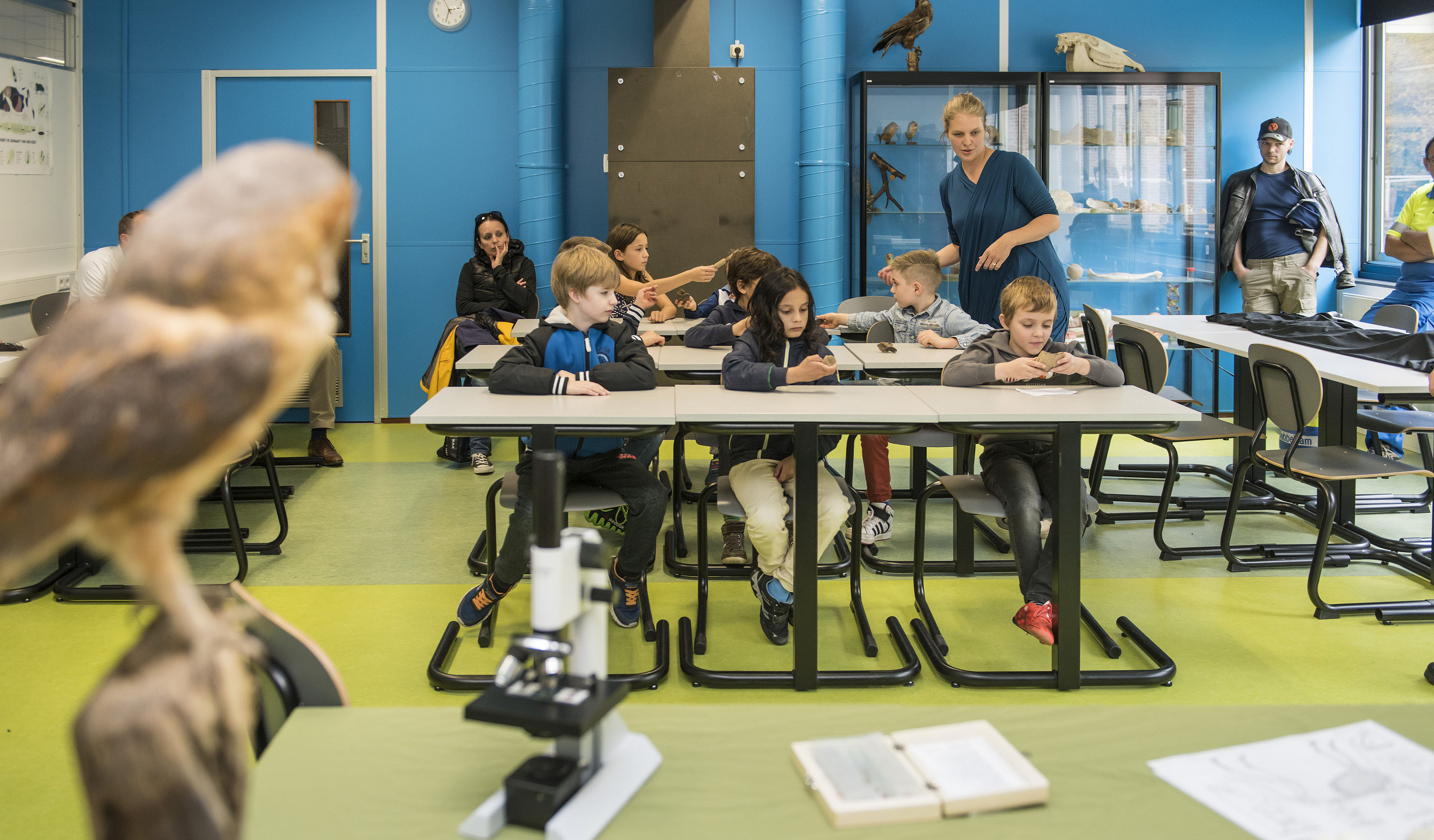 Kinderen handwerken, maken muziek, drummen, schrijven een song, sporten etc